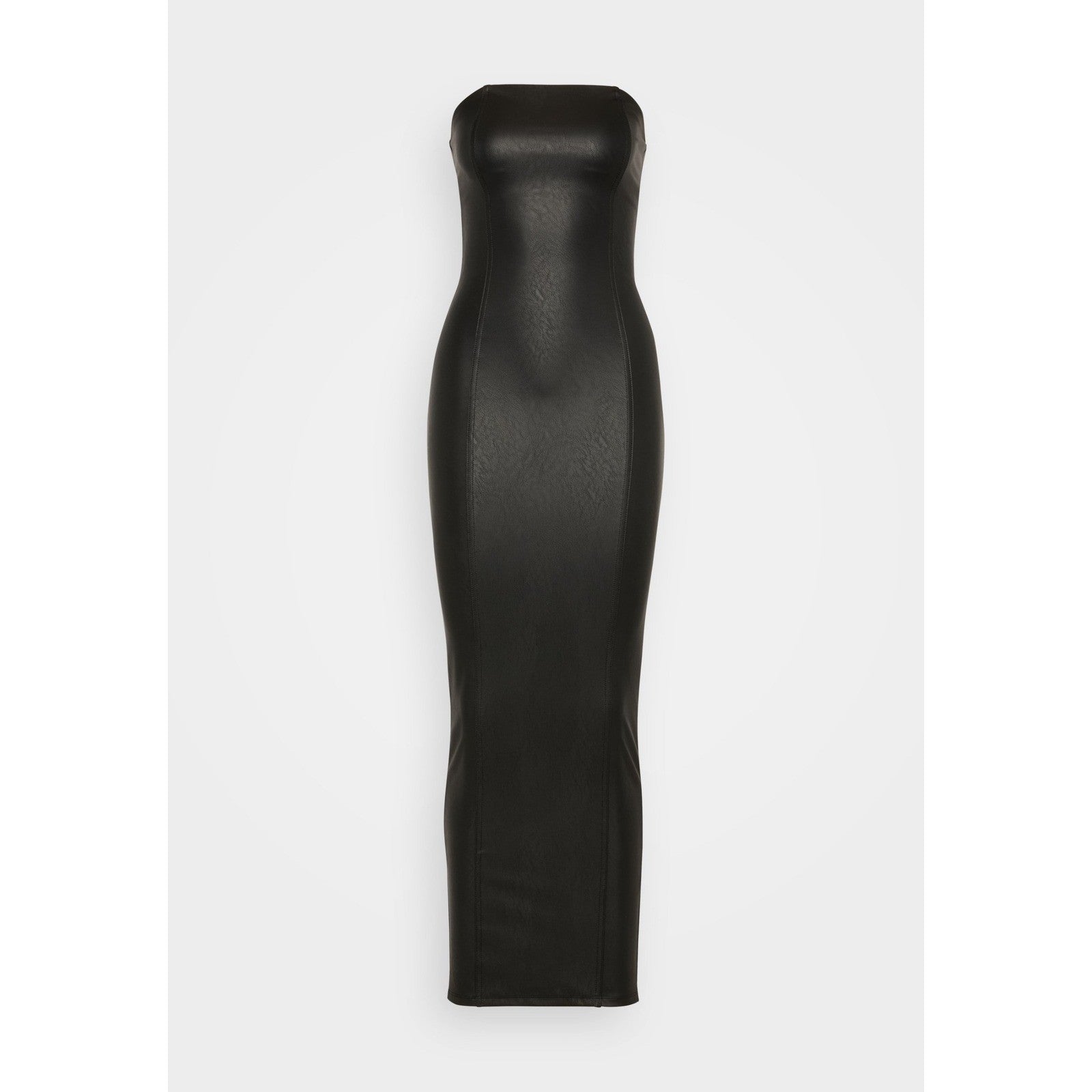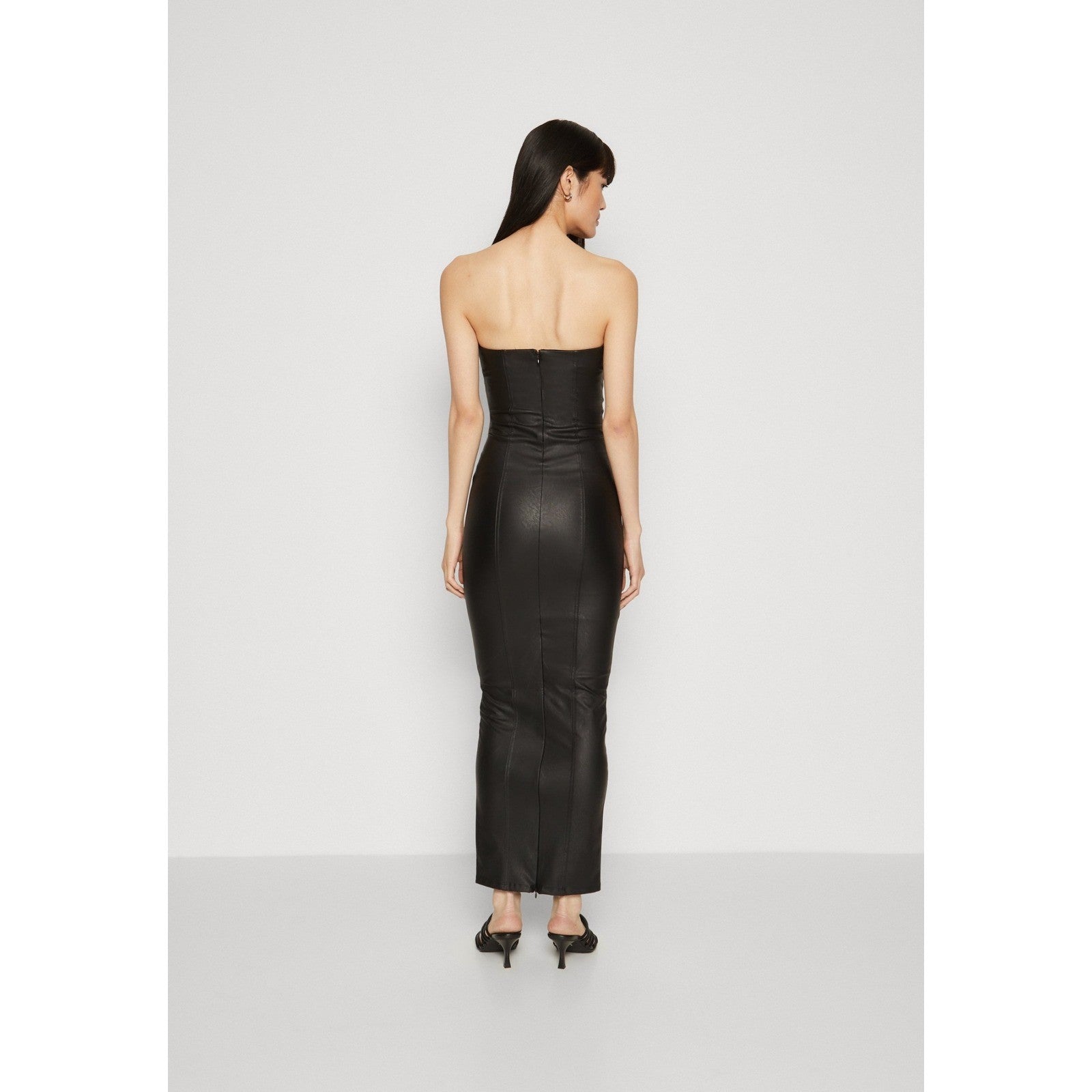 Numi Midi Women Casual Leather Dress Black Sleeveless Party Wear